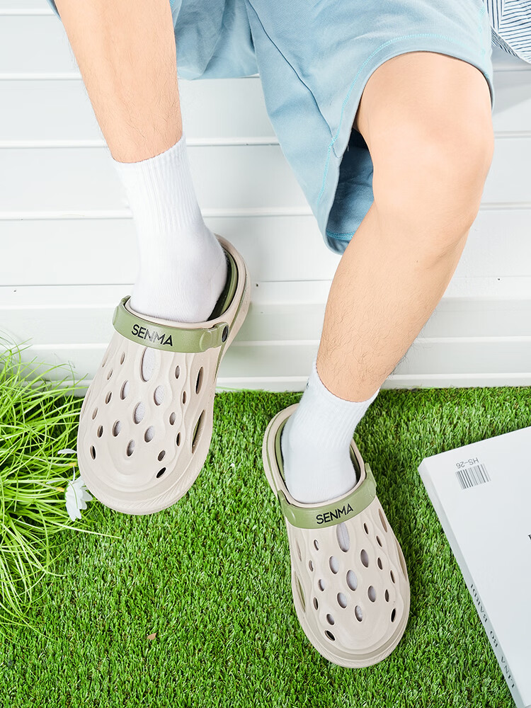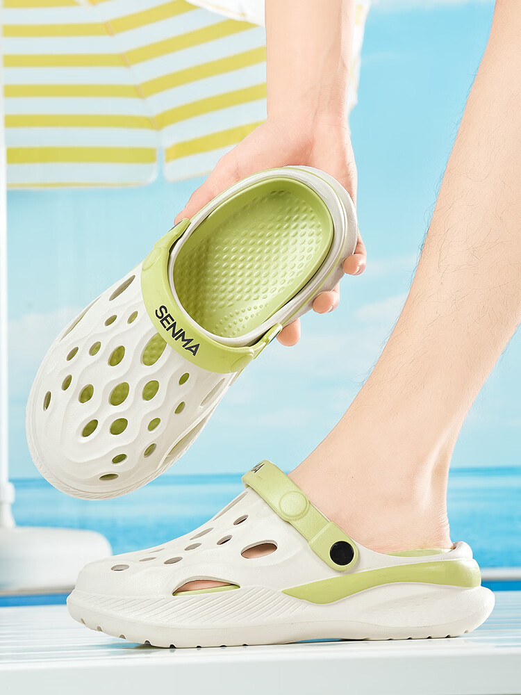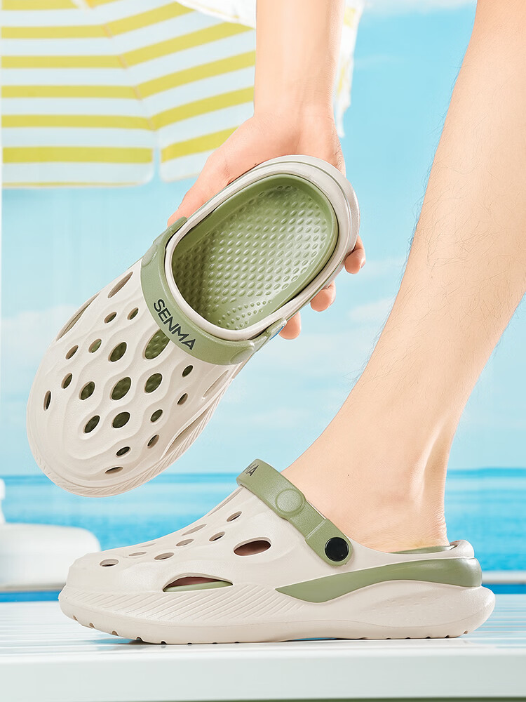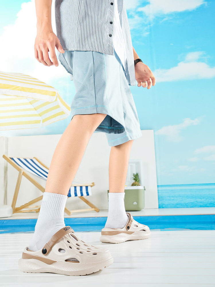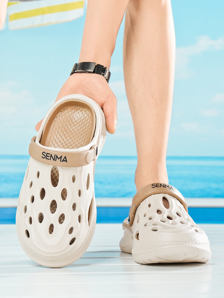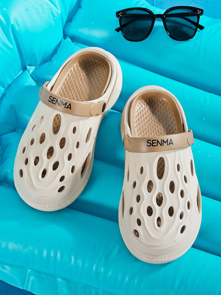 森馬洞洞鞋男2026夏季外穿厚底运动沙滩凉鞋男士踩屎感潮流防水凉拖鞋 米棕【基础款】 36-37 现货秒发