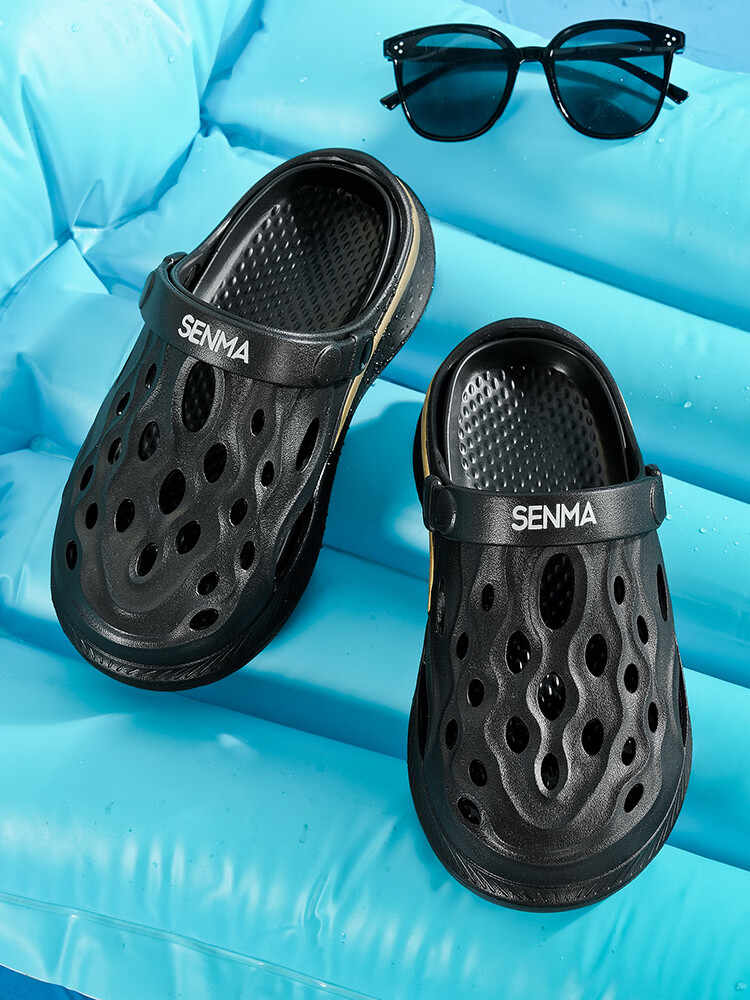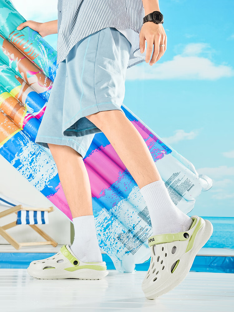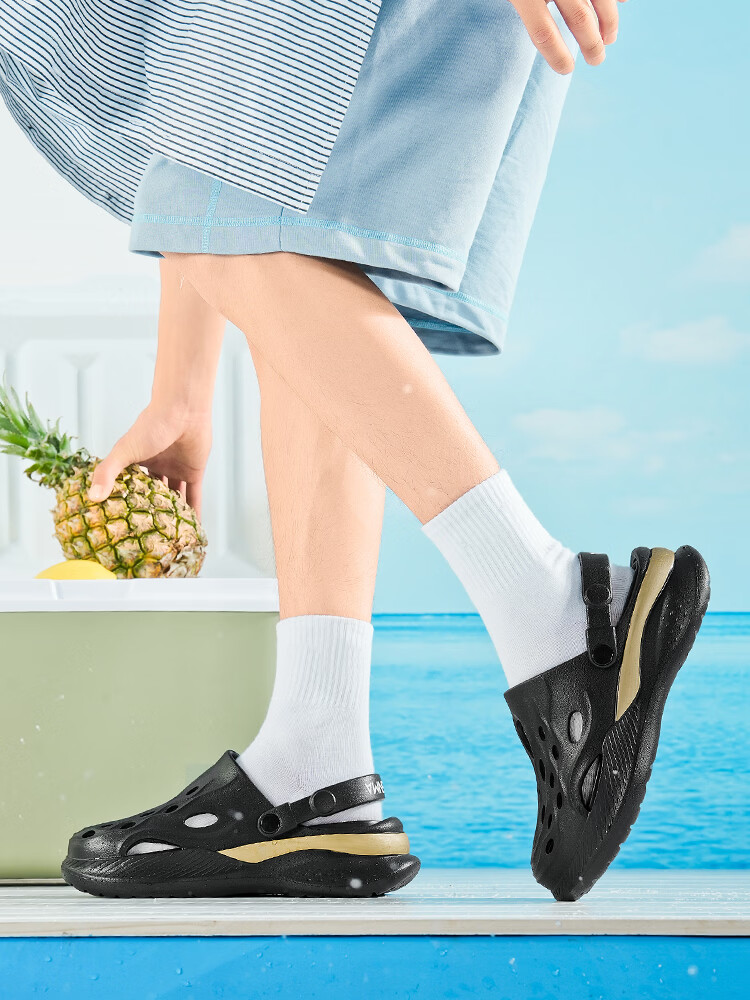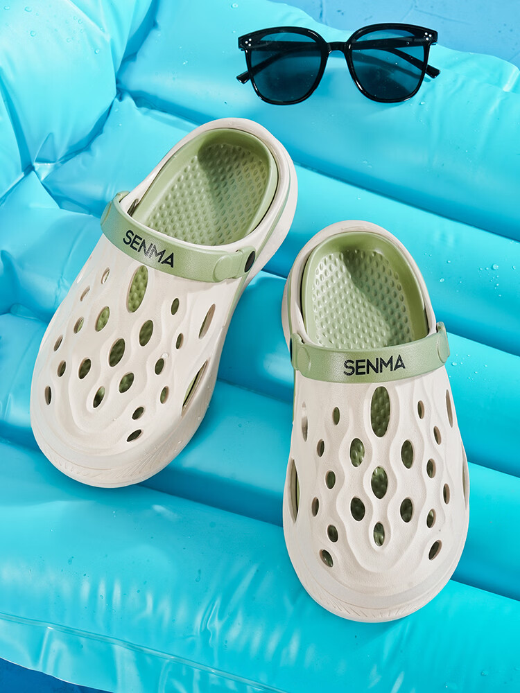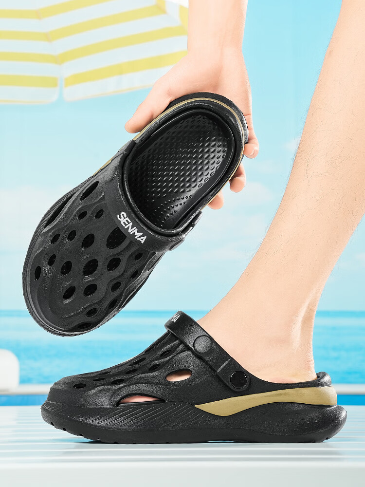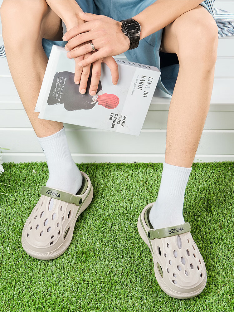 森馬洞洞鞋男2026夏季外穿厚底运动沙滩凉鞋男士踩屎感潮流防水凉拖鞋 米棕【基础款】 36-37 现货秒发