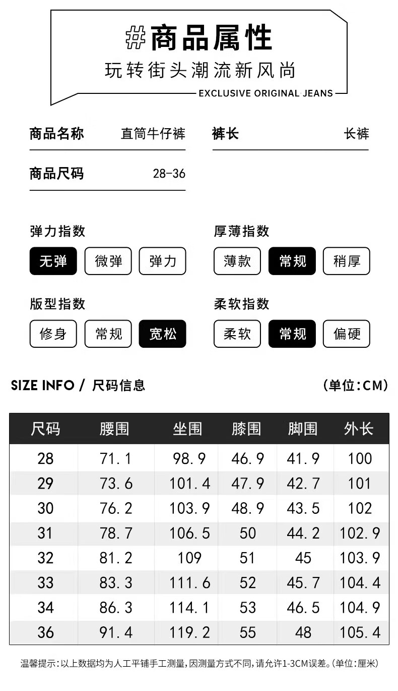 真维斯(Jeanswest)美式复古牛仔裤男新款春夏季直筒宽松青少年休闲长裤春秋裤子男款 蓝色 28