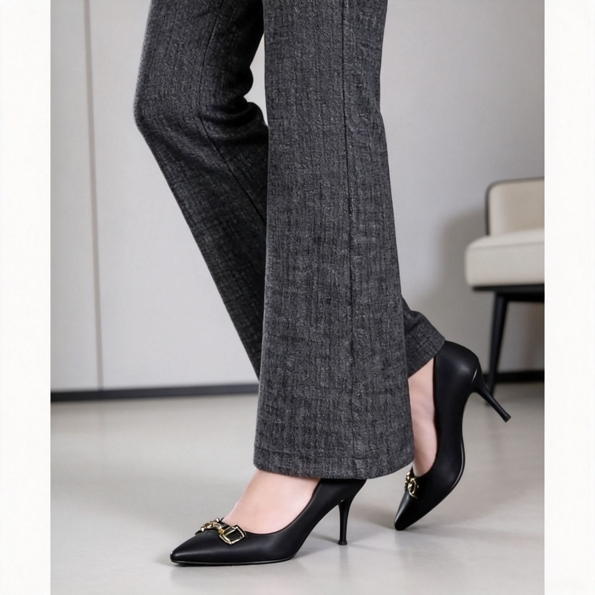 灰色微喇裤子女秋冬新款百搭高腰窄版百搭修身显瘦休闲喇叭裤