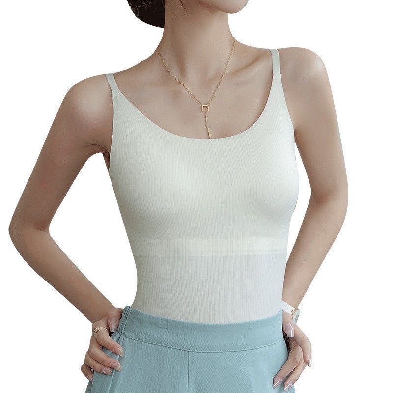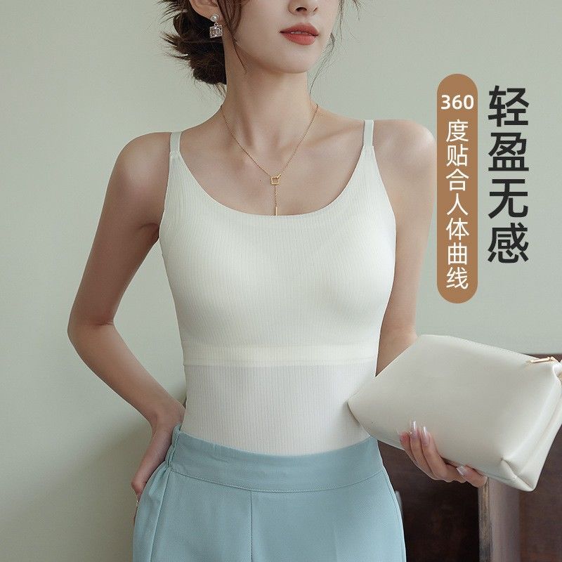 冰丝无痕吊带背心女士带胸垫一体式修身舒适中青年美背内衣