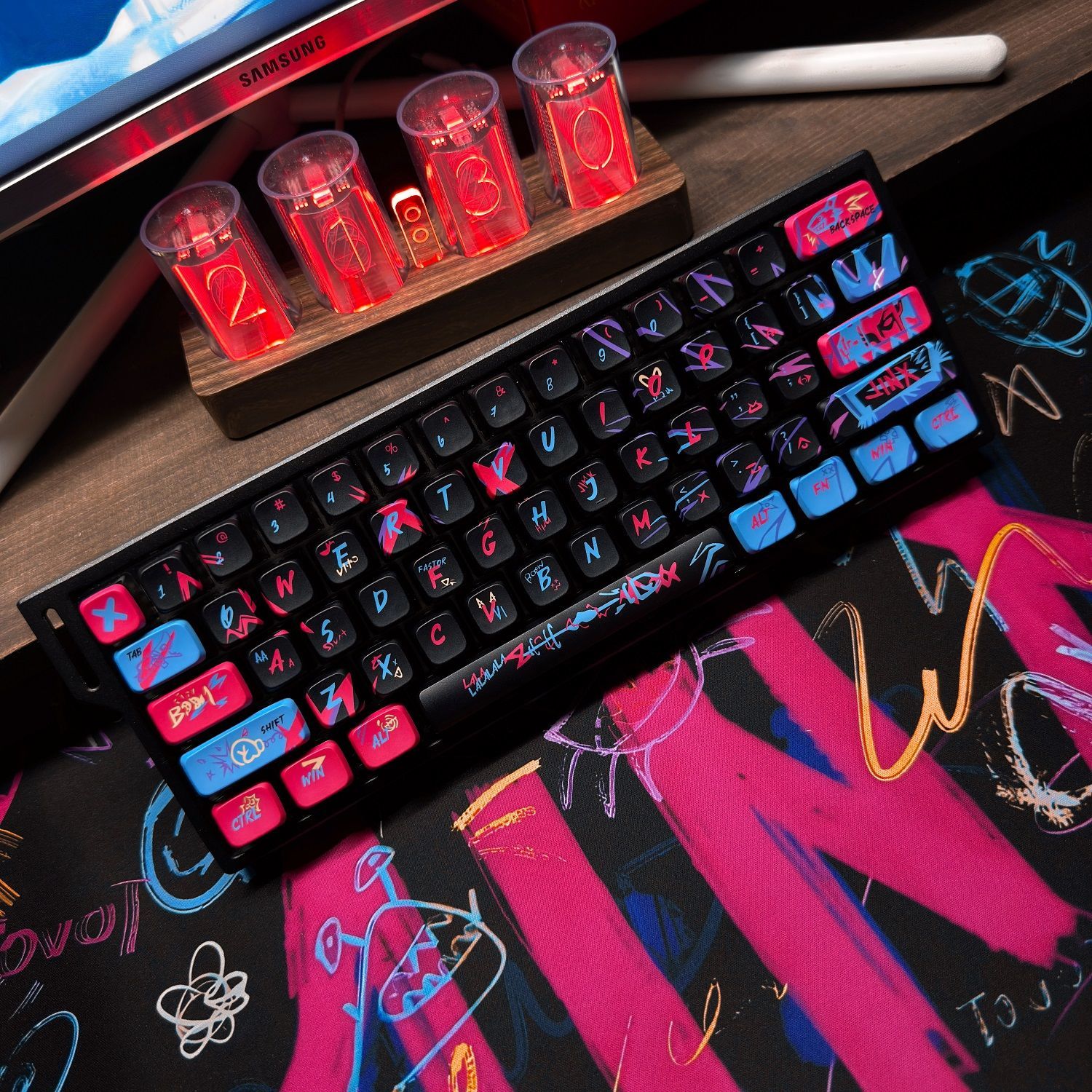 英雄联盟双城之战金克丝键帽机械键盘核动力四面透光适配60/68/75
