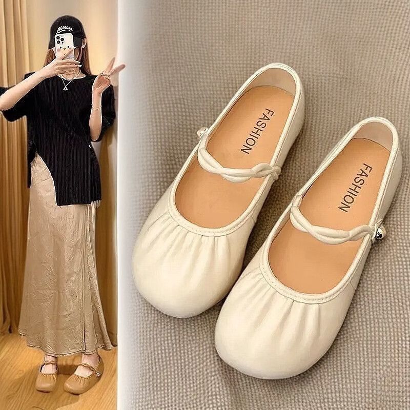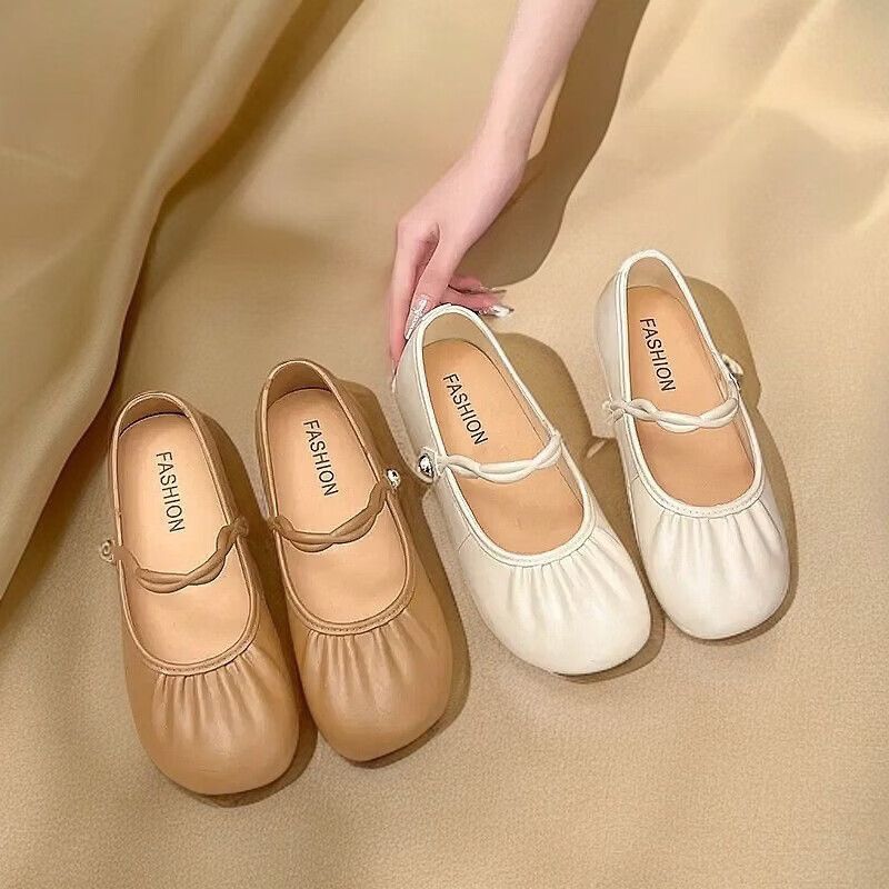 2026新款夏季法式复古圆头懒人凉拖鞋女褶皱气质浅口轻便舒适