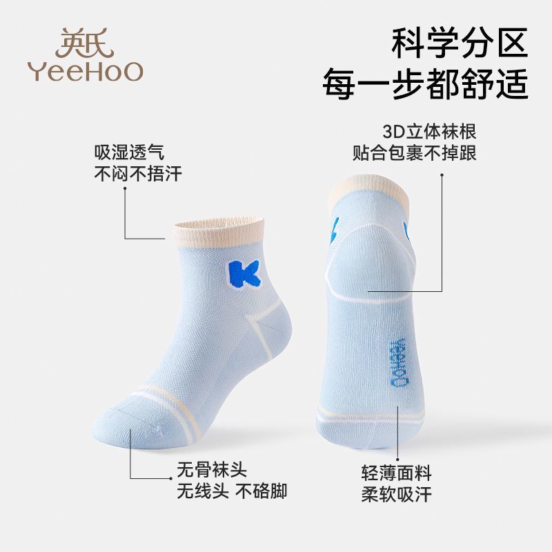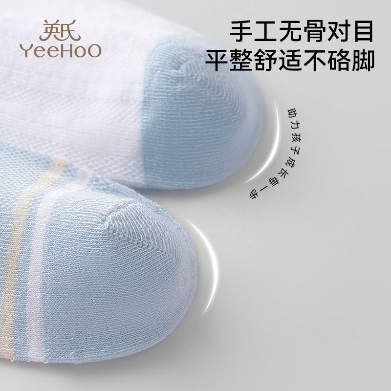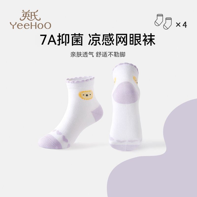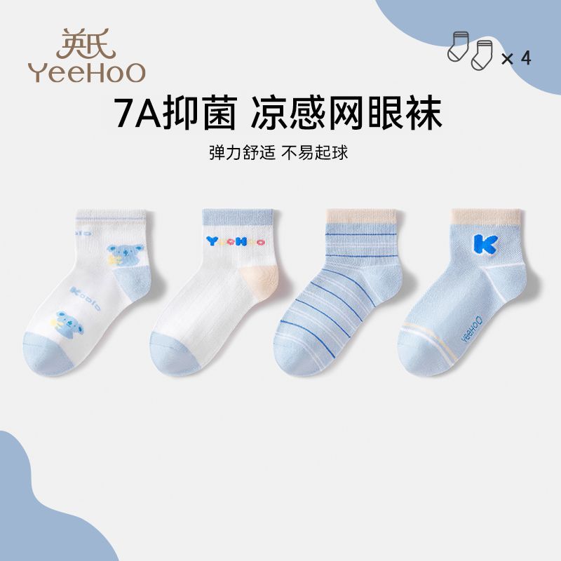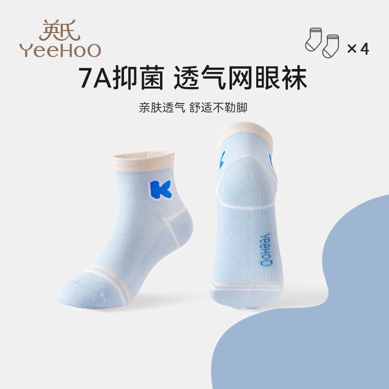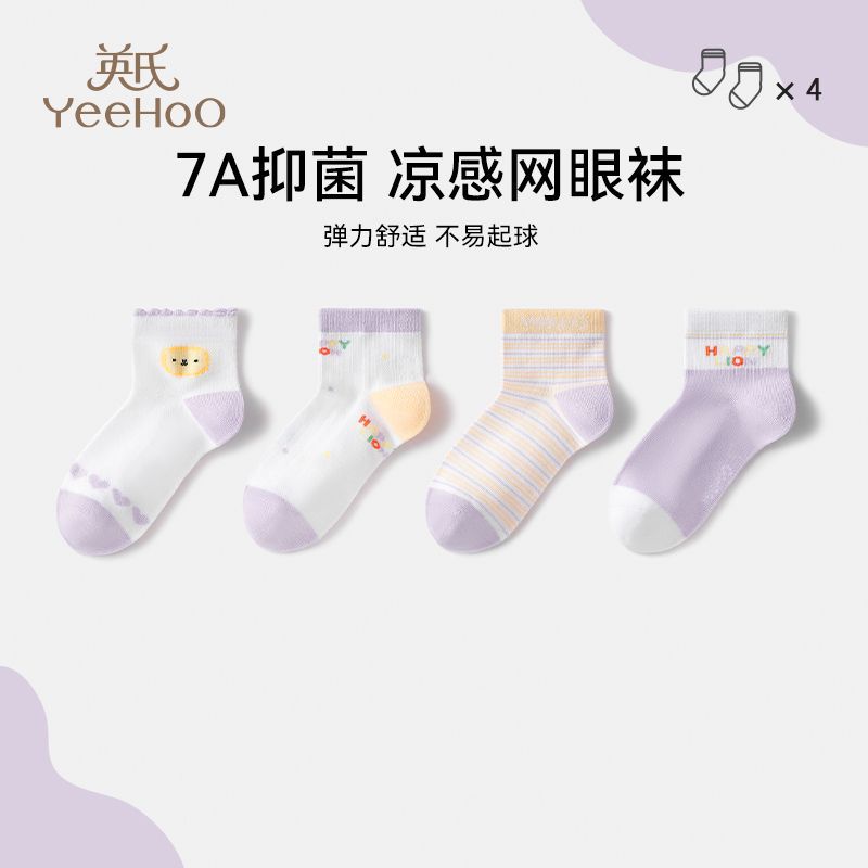 英氏儿童袜子男女童7A抑菌植物纱线夏季凉感透气网眼袜a类中筒袜