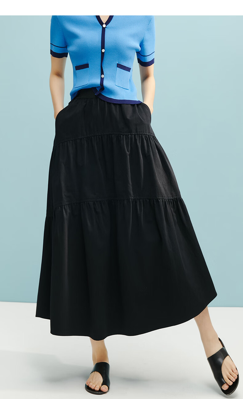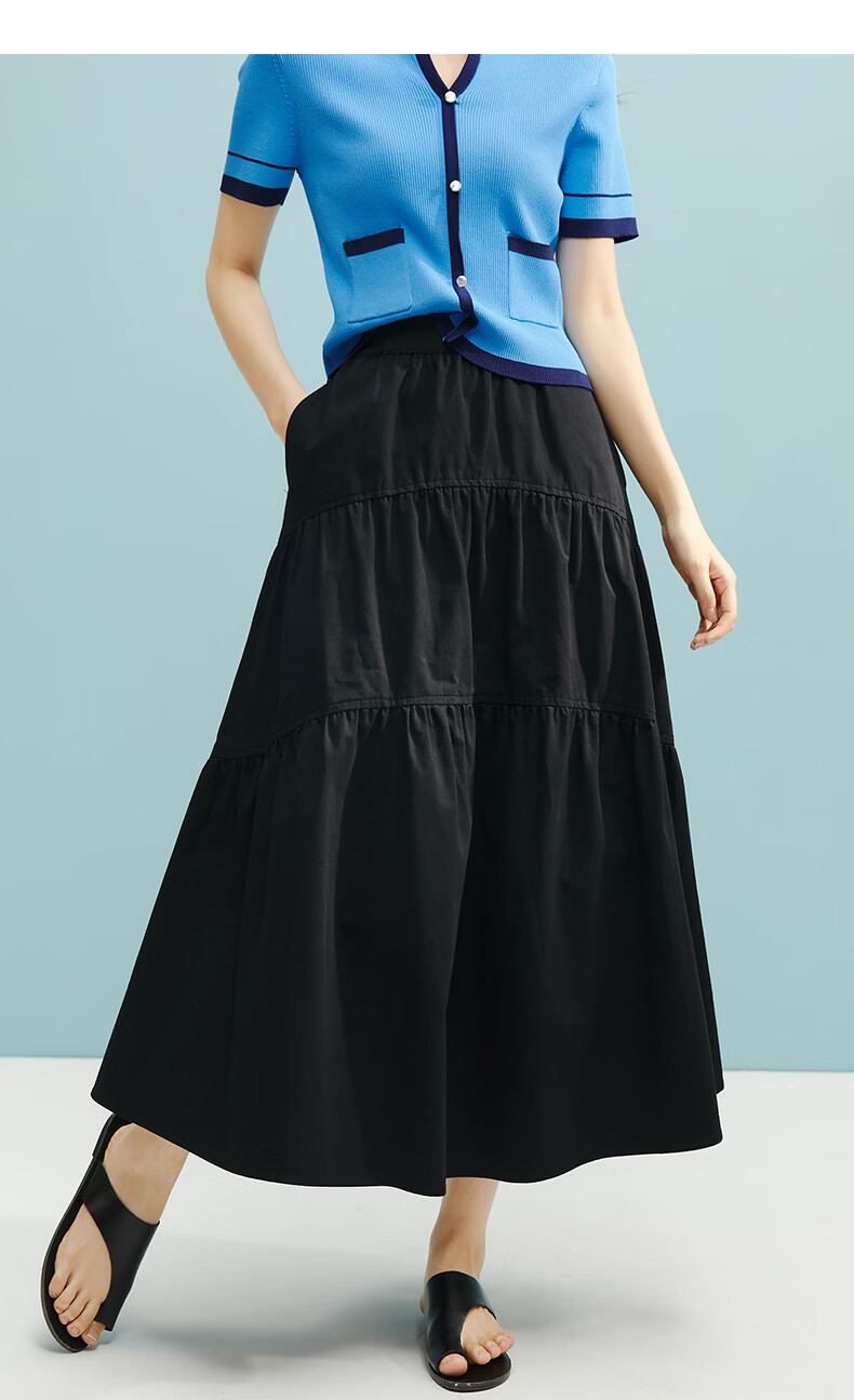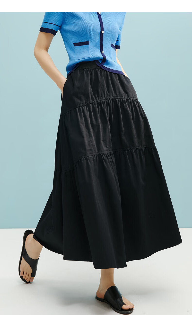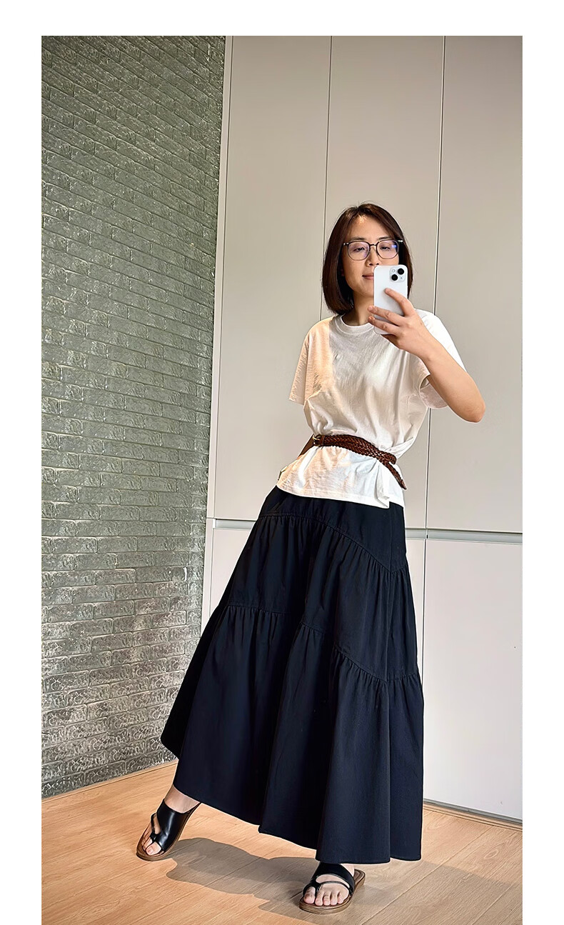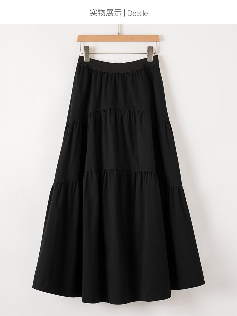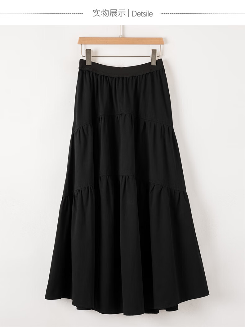 晚白【断码清仓】2026年春款时尚半裙休闲大摆亲肤全棉纯色半身裙 黑色 M