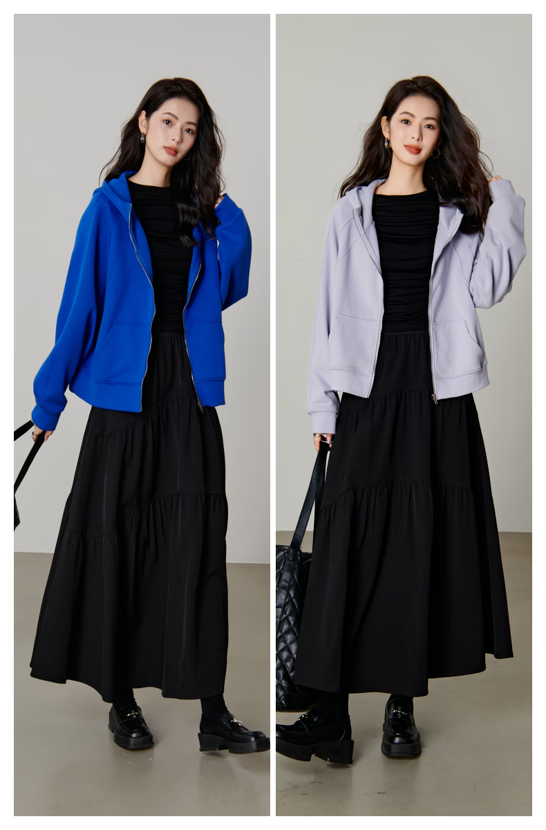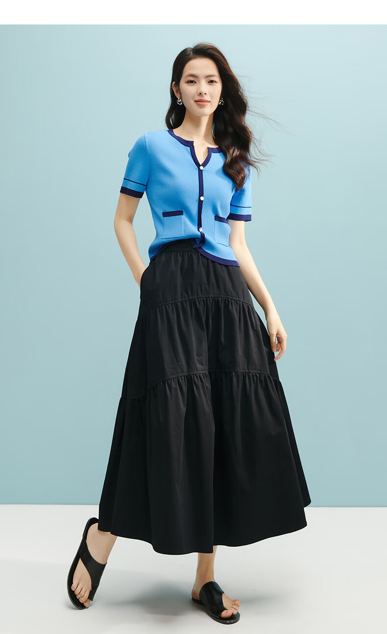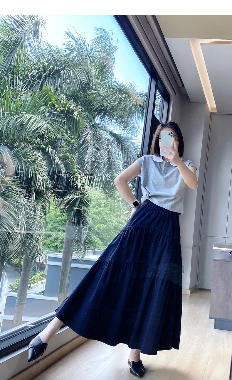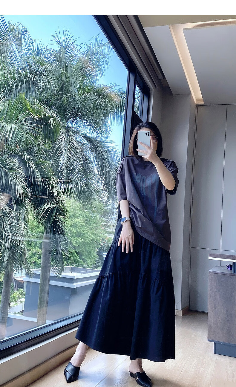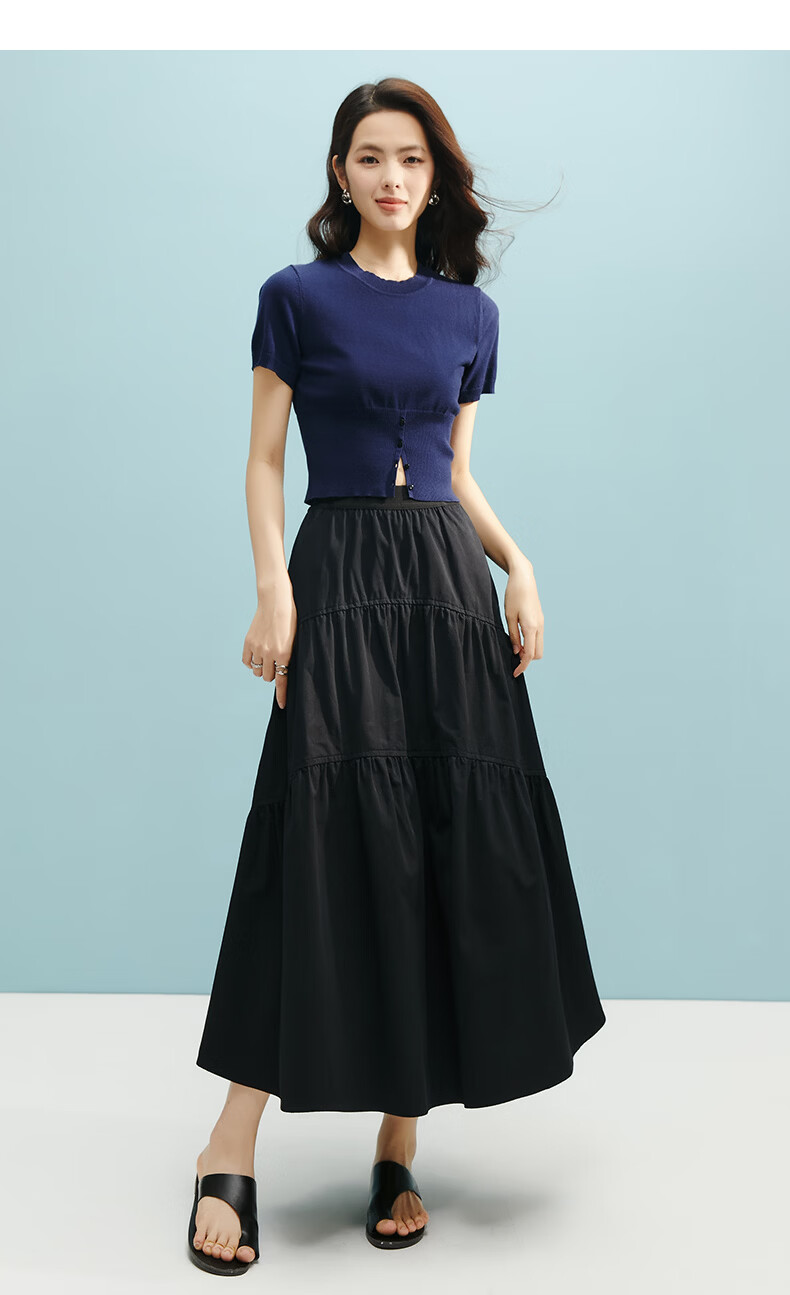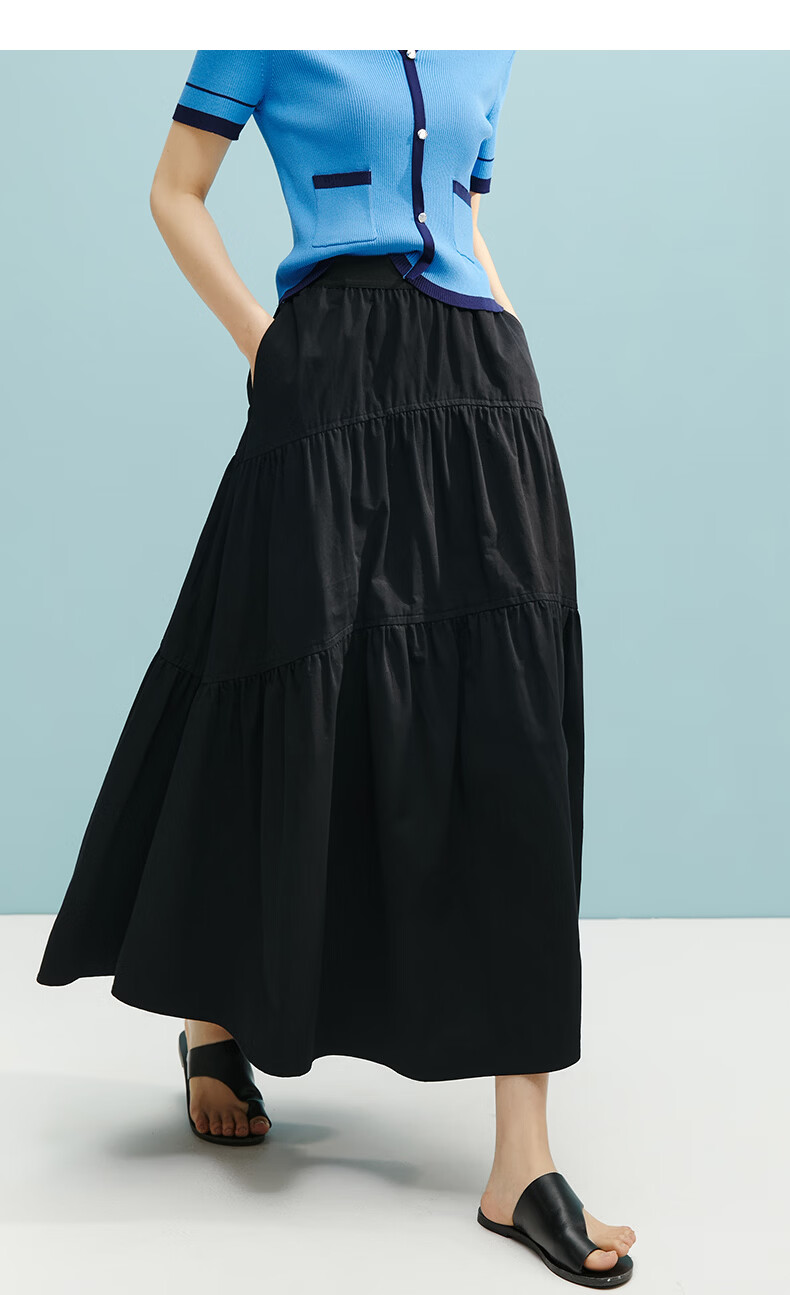 晚白【断码清仓】2026年春款时尚半裙休闲大摆亲肤全棉纯色半身裙 黑色 M