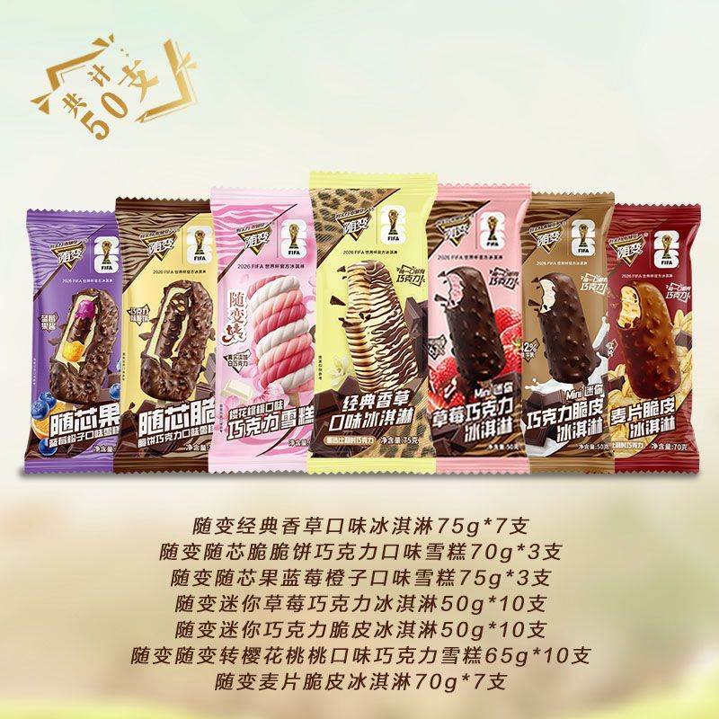 50支蒙牛冰淇淋组合随变牛乳经典香草随芯脆随芯果随变转小尖尖
